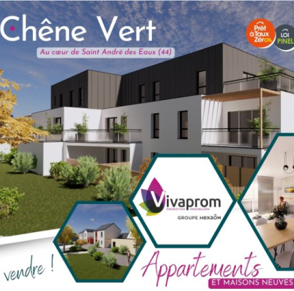 Vivaprom vous dévoile son nouveau programme à Saint-André des Eaux : Le « Domaine du Chêne Vert », idéalement situé au cœur du bourg de Saint-André des Eaux, une adresse de choix pour y vivre toute l’année, acquérir une résidence secondaire à proximité de la mer (5 minutes de la Baule) ou réaliser un bel investissement PINEL.